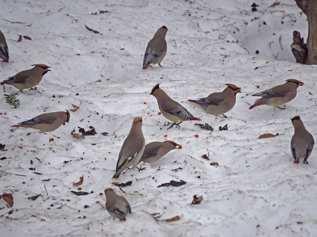3月28日 東神楽 キレンジャク・ヒレンジャク 10+ ツグミ