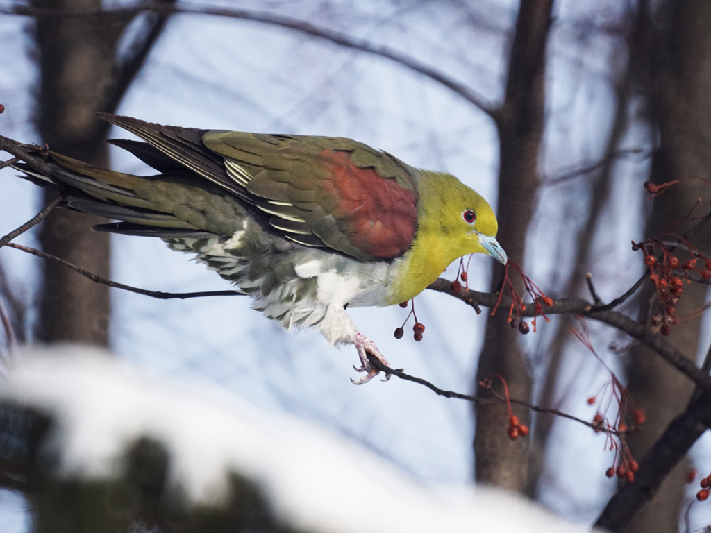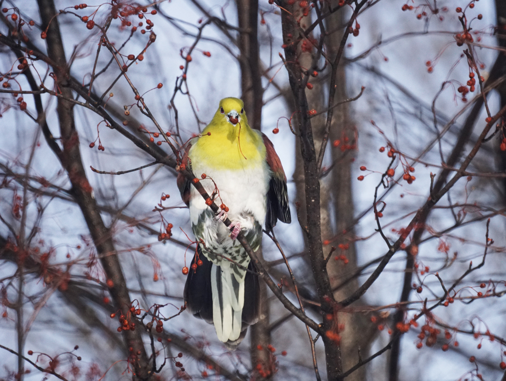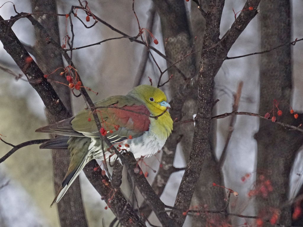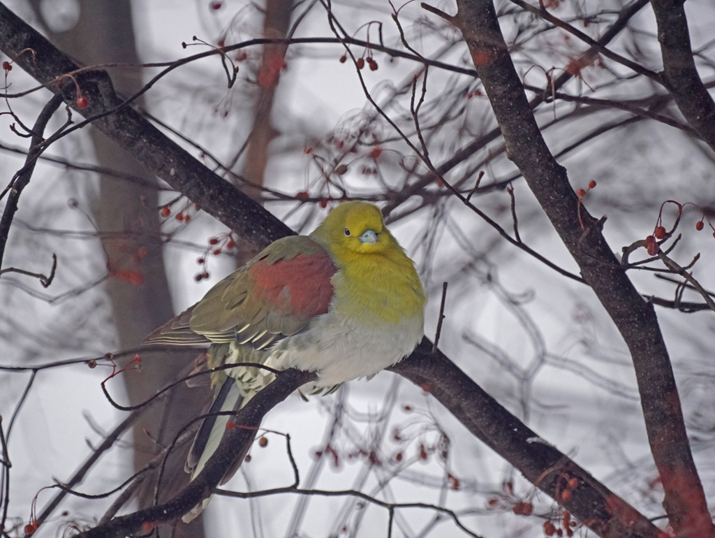 厳寒期のアオバト、やっと会えました。
