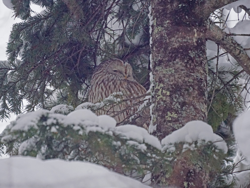 鳥友が、フクロウの見える所まで案内してくれました。感謝!