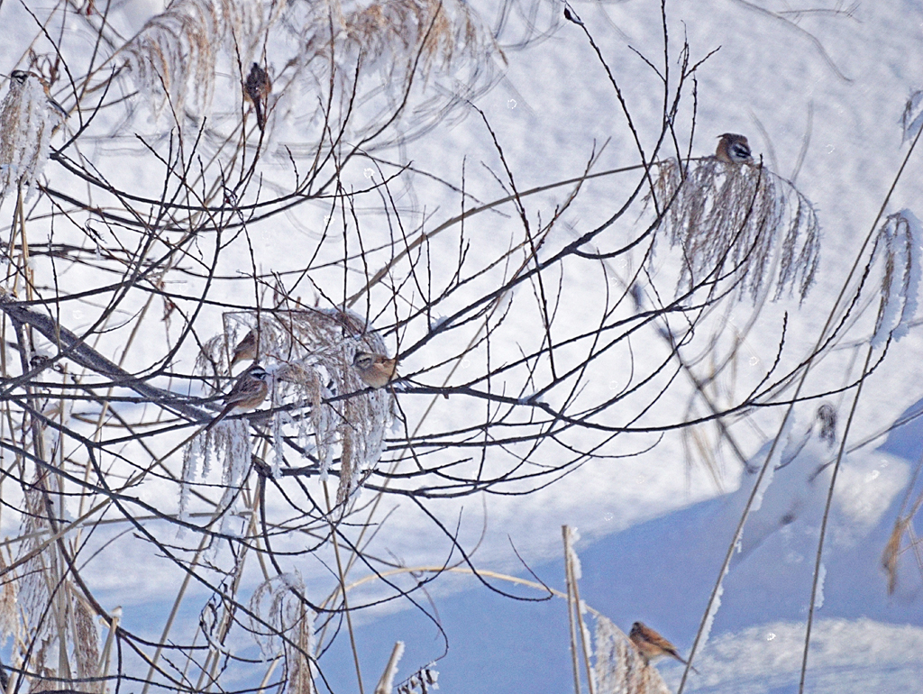最低気温は -21.8℃(アメダス)、シバレましたがホオジロが出ました。