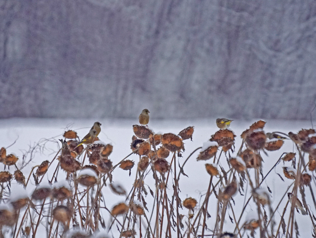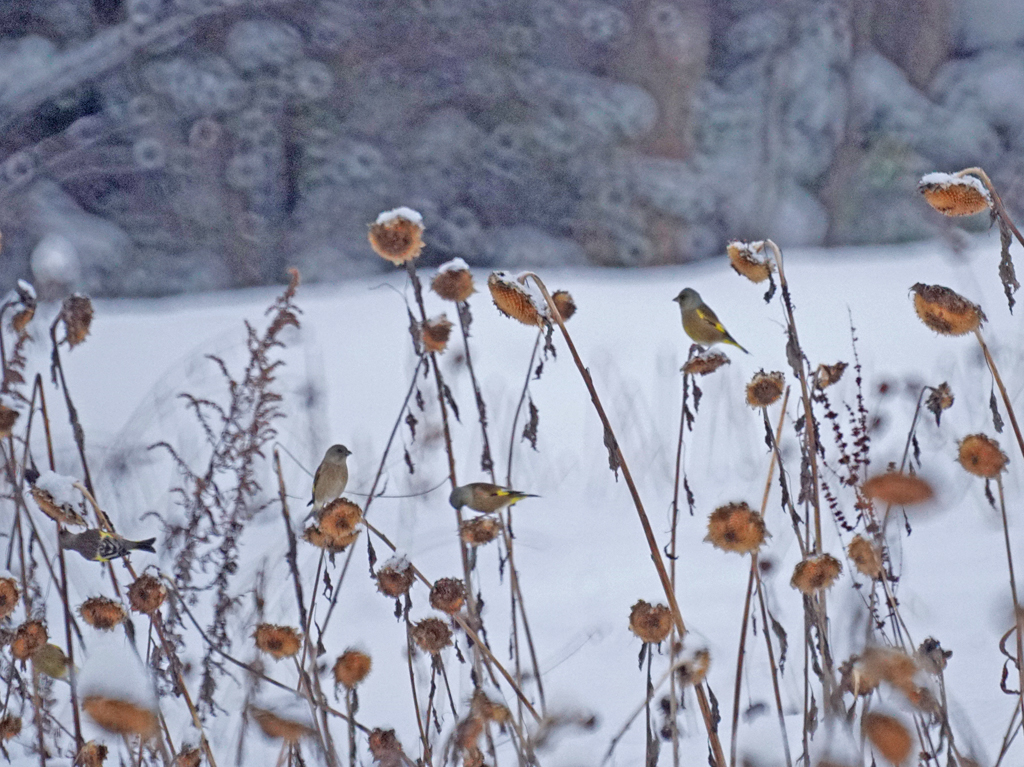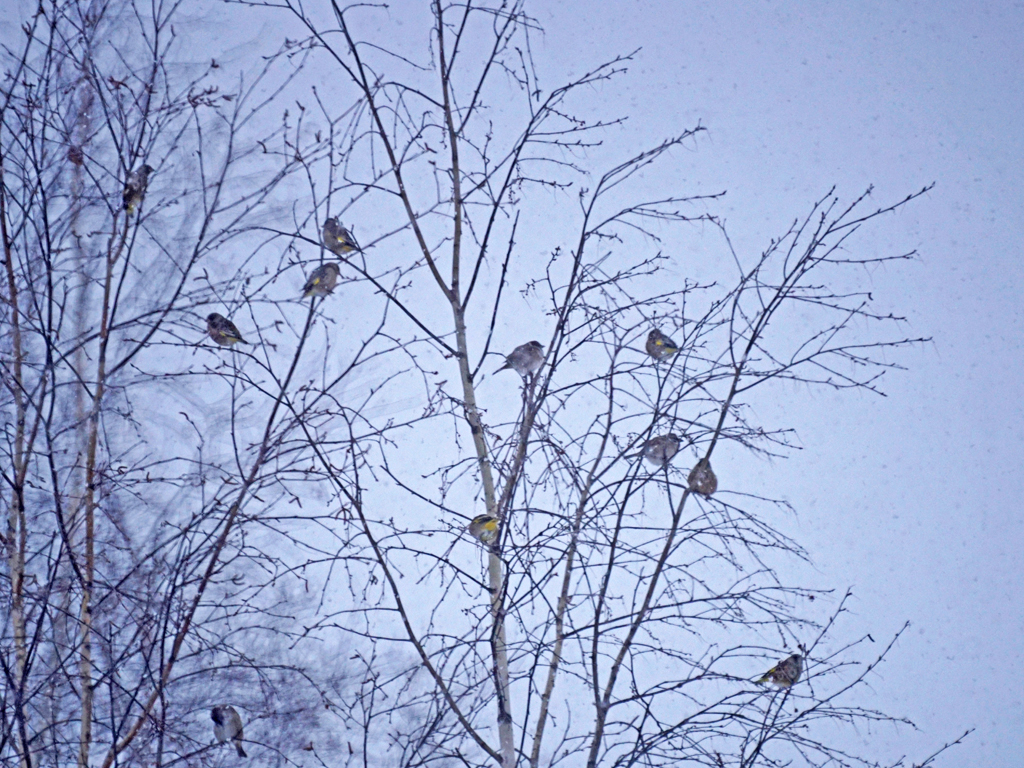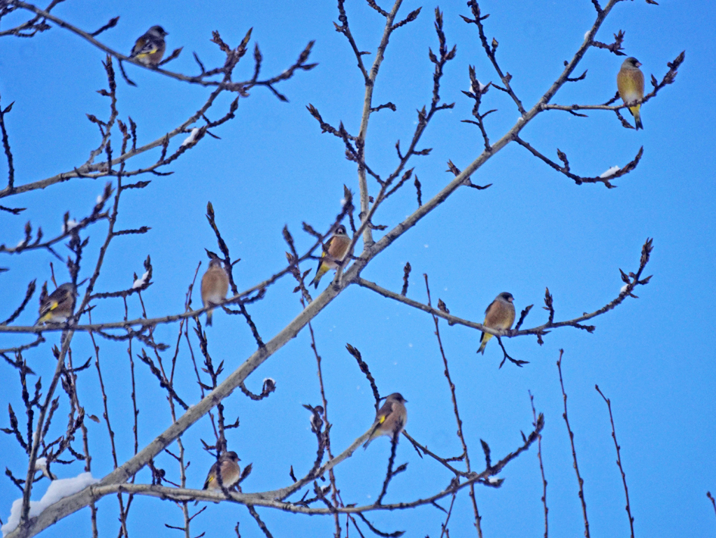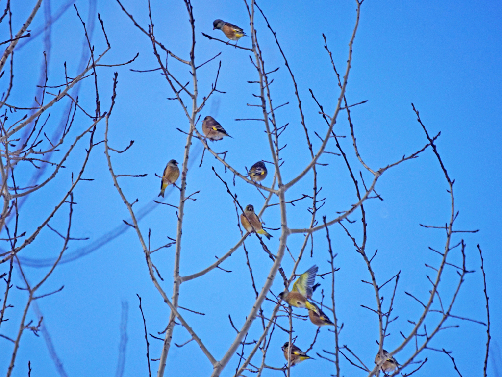 12月3日 東神楽 カワラヒワ 50+ エナガ 7±