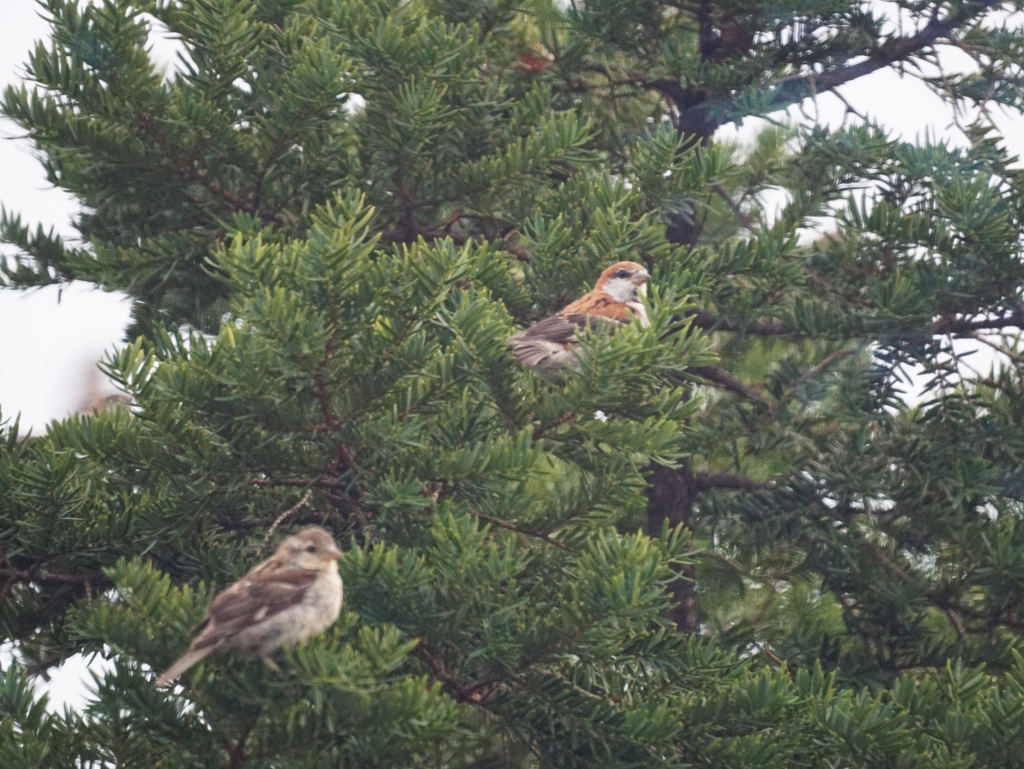 ここ2、3日、夕方になると、ニュウナイスズメが群れで来ます。