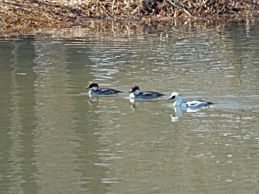 4月4日 永山新川と オナガガモ トモエガモ ミコアイサ