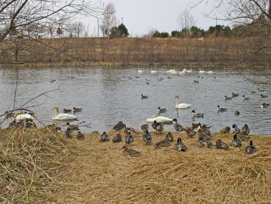 永山新川 オナガガモ ヒドリガモ オオハクチョウ コハクチョウ