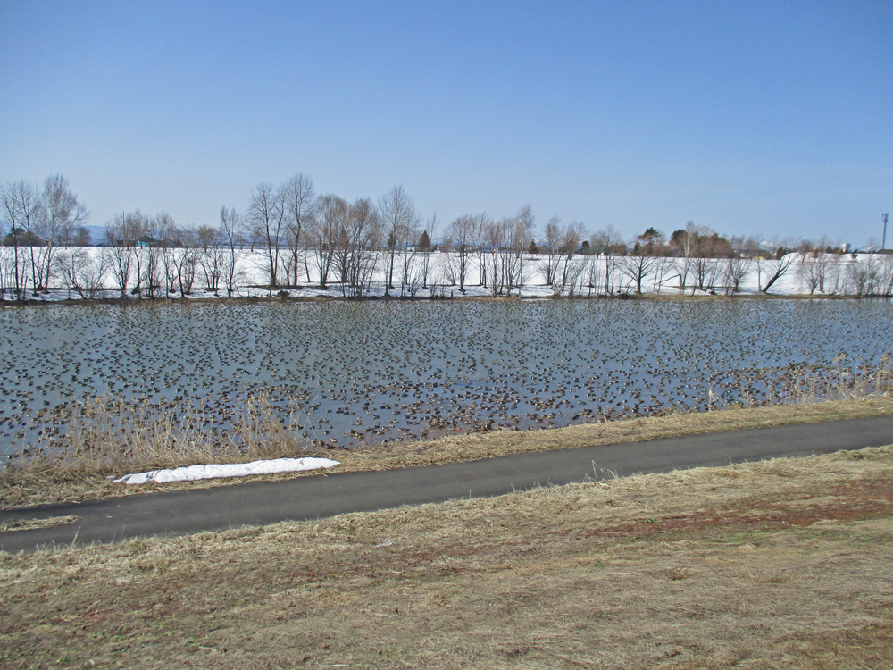 3月29日 永山新川と オナガガモ ヒドリガモ トモエガモ ハシビロガモ