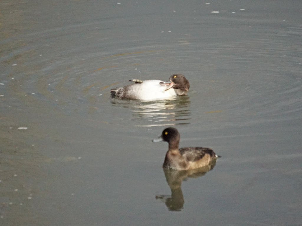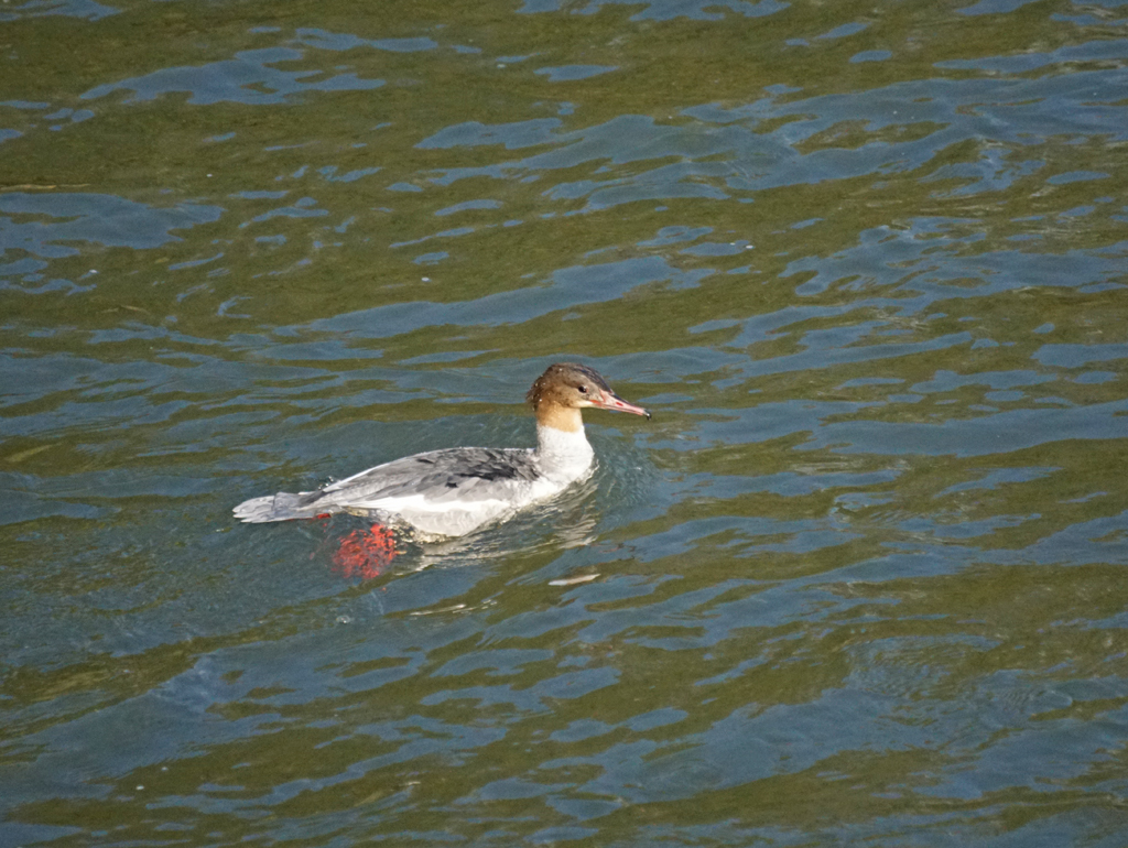 ホオジロガモ、カワアイサ、少ないですが来ていました。
