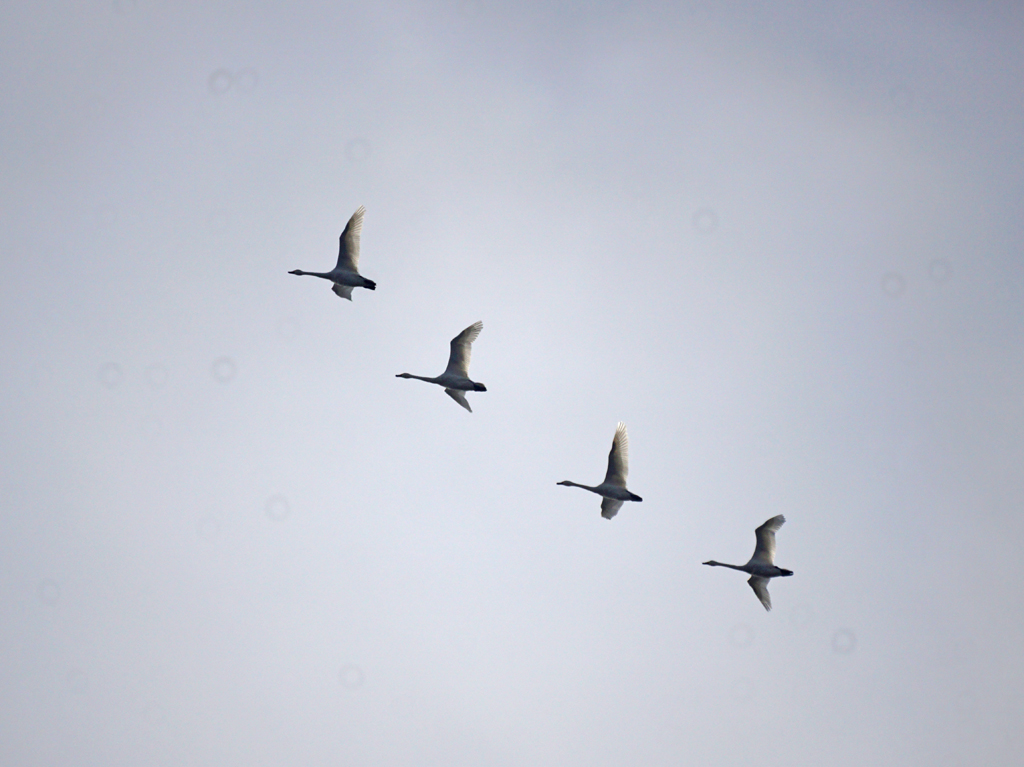 上空をハクチョウが、石狩川の下流方向へ。
