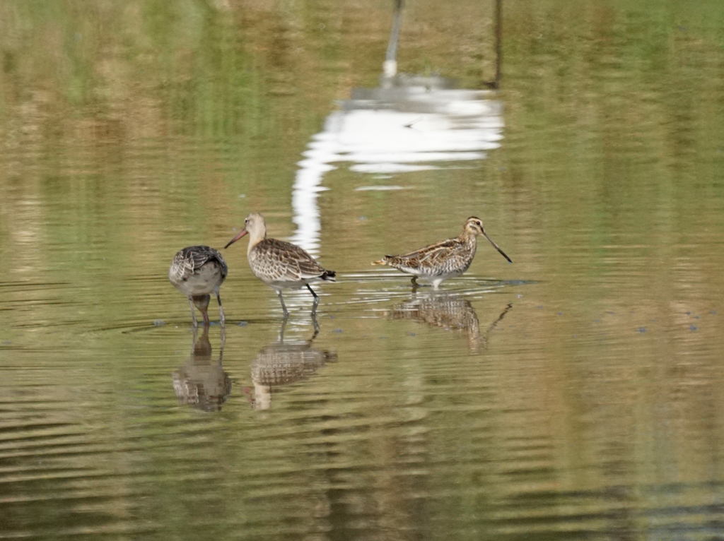 9月19日 東 川 オグロシギ タシギ ダイサギ カルガモ