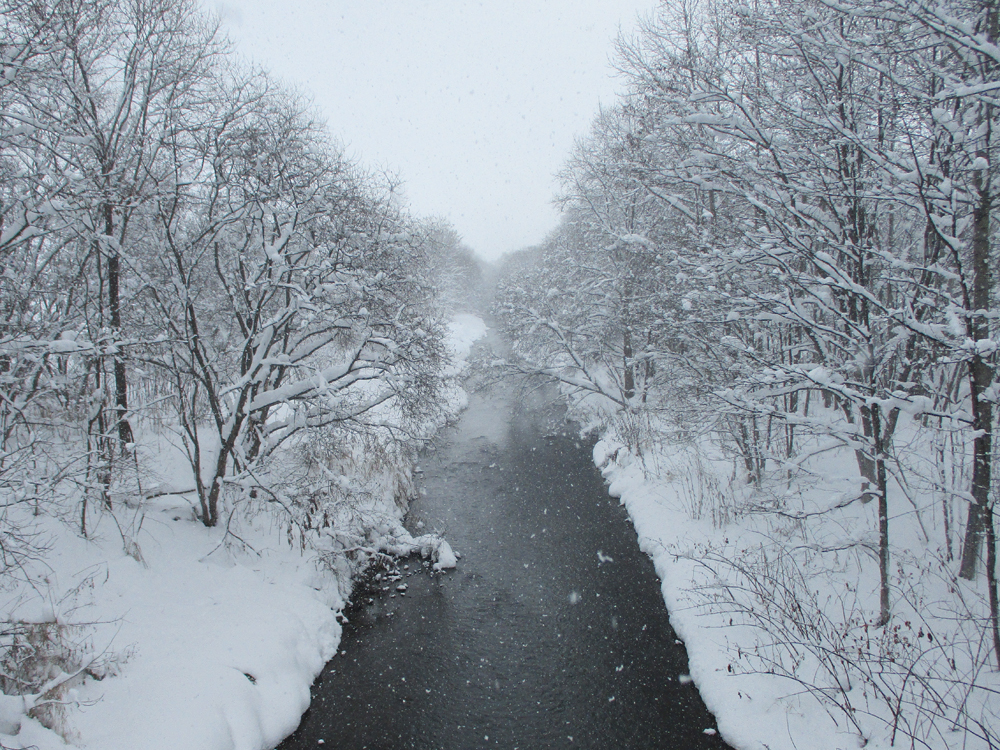 12月12日 ポン川 急に雪が降って来て、引き返しました。