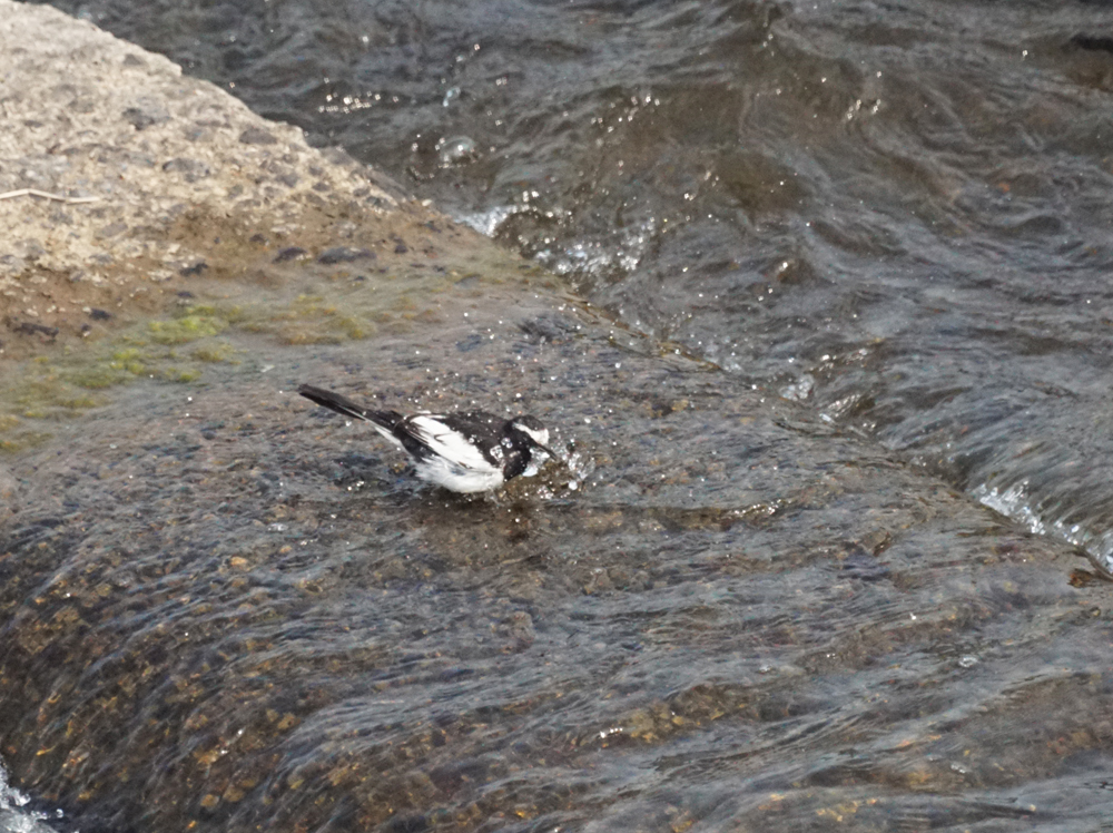 本日は真夏日、セグロセキレイも水浴び
