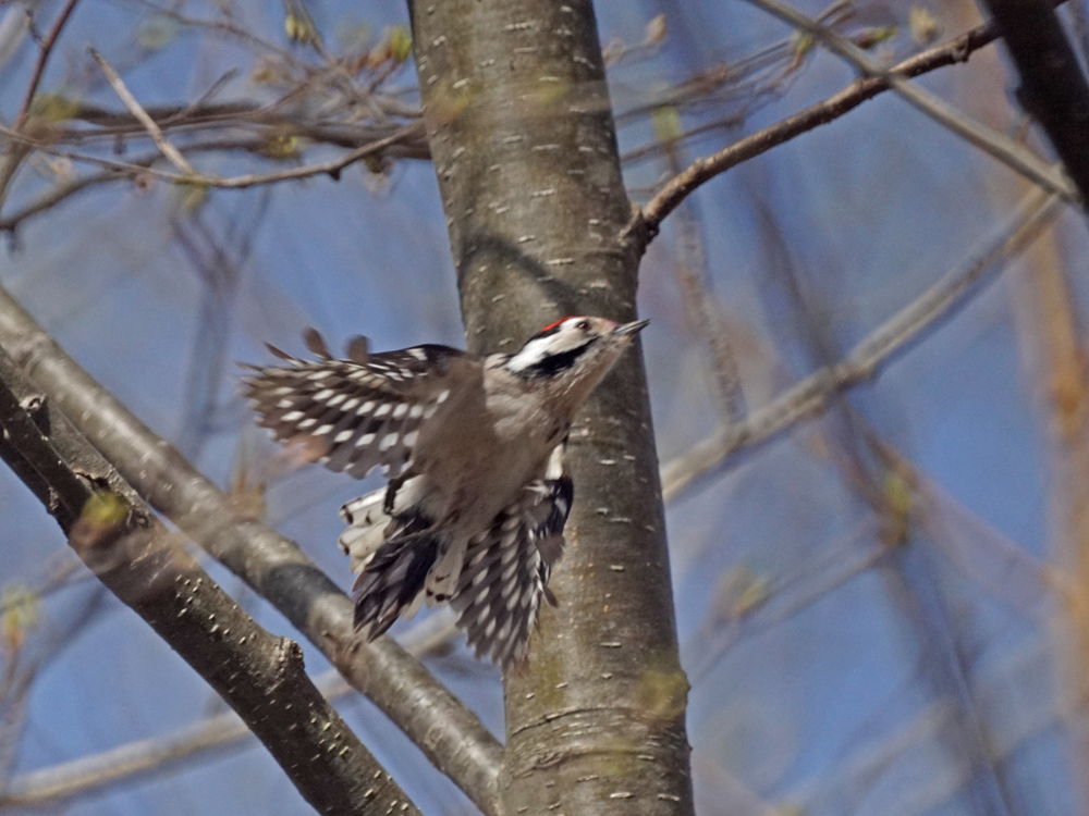 コアカゲラ、アカゲラ♂に追い回されていました。