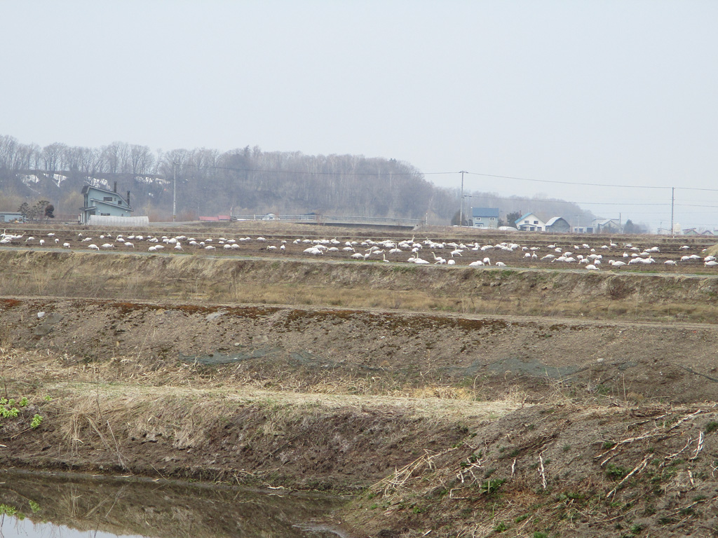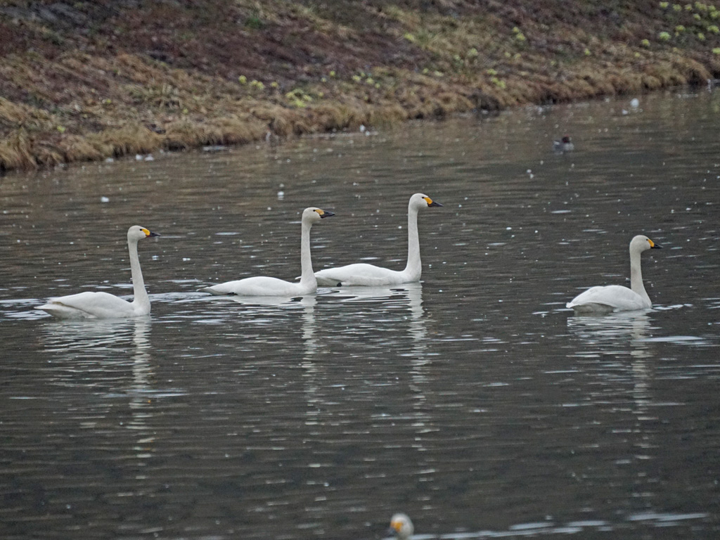 4月12日 東神楽 コハクチョウ オオハクチョウ ヒドリガモ オナガガモ