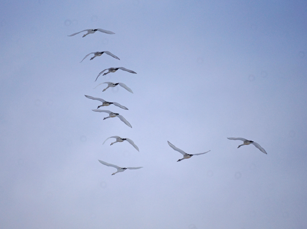 上空を、ハクチョウが西の方へ