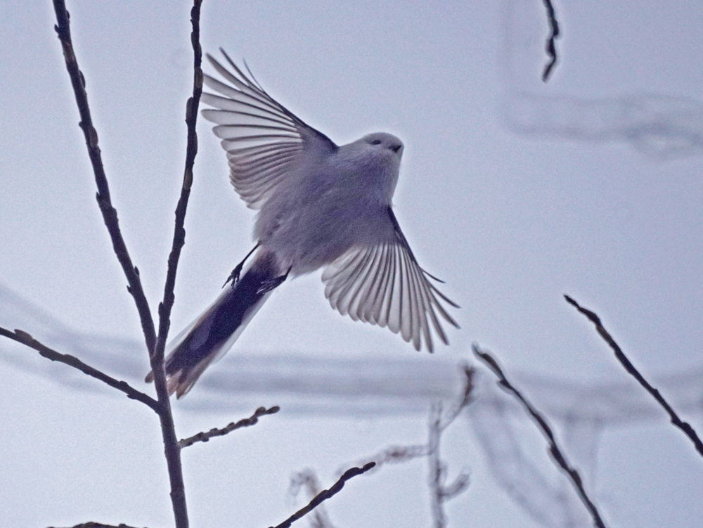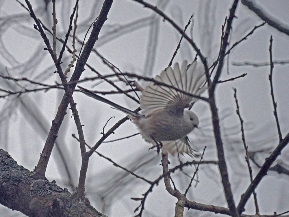 傘をさしながら、エナガ 何とか撮れました。