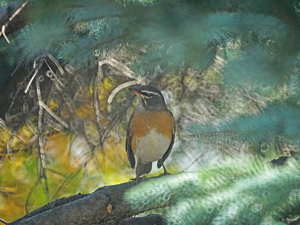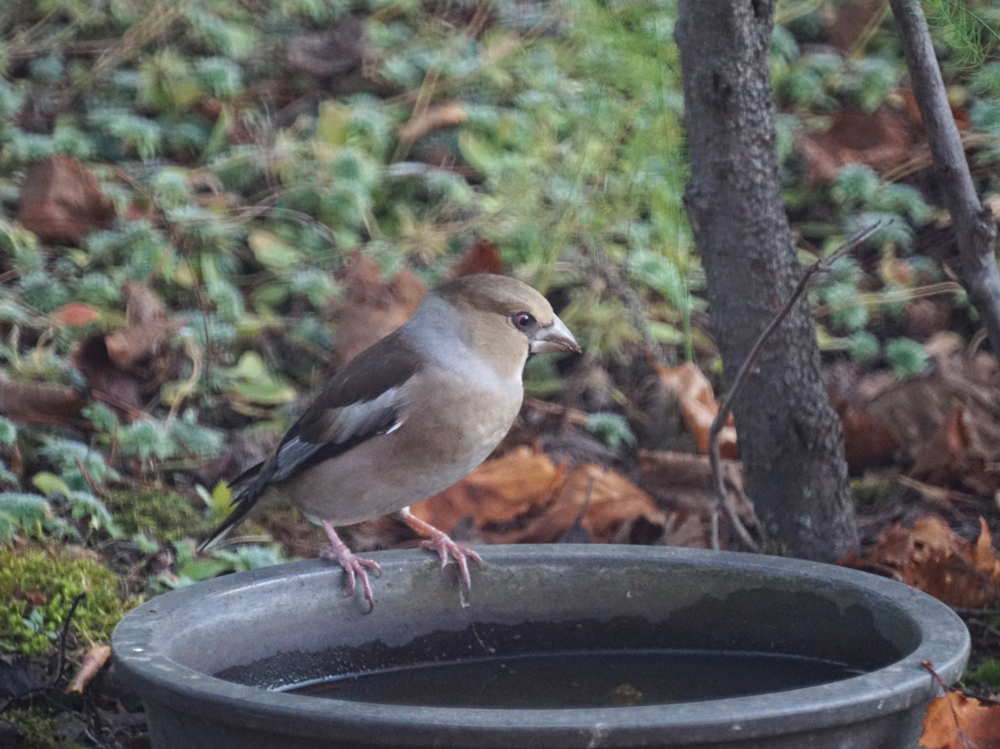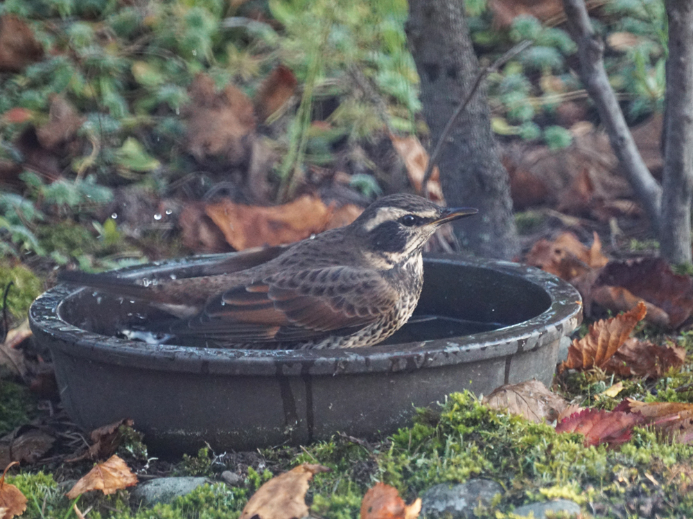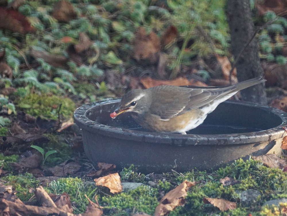 イチイの実、アロニアの実を食べに来て、バードバスは